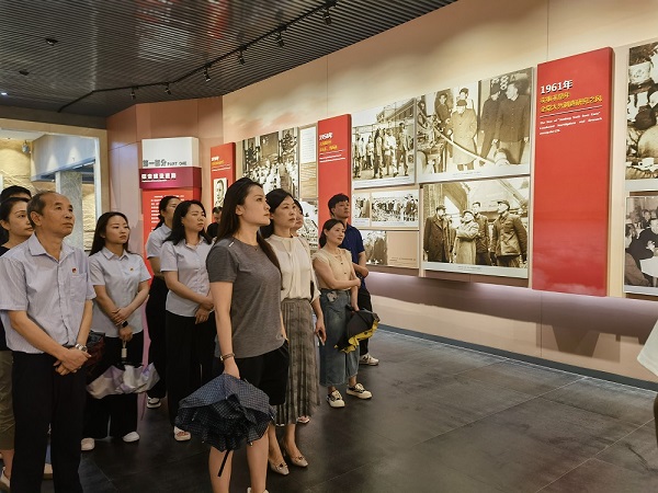 在陳列館內,大家跟隨著講解員的腳步,在一幅幅生動的圖片、一件件歷史物件和一段段珍貴的影像中追尋小平同志的足跡,感受他在江西三年多的真實工作與生活狀態,深刻領會老一輩無產階級革命家在逆境中不屈不撓的鋼鐵意志、愛黨為民的赤誠初心和失志不渝的堅定信念。